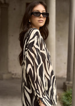 Our model Zoe is wearing a size 8 (82cm bust, 68cm waist, 90cm hips and is 164cm tall)