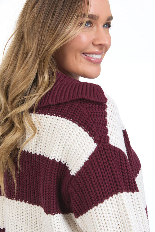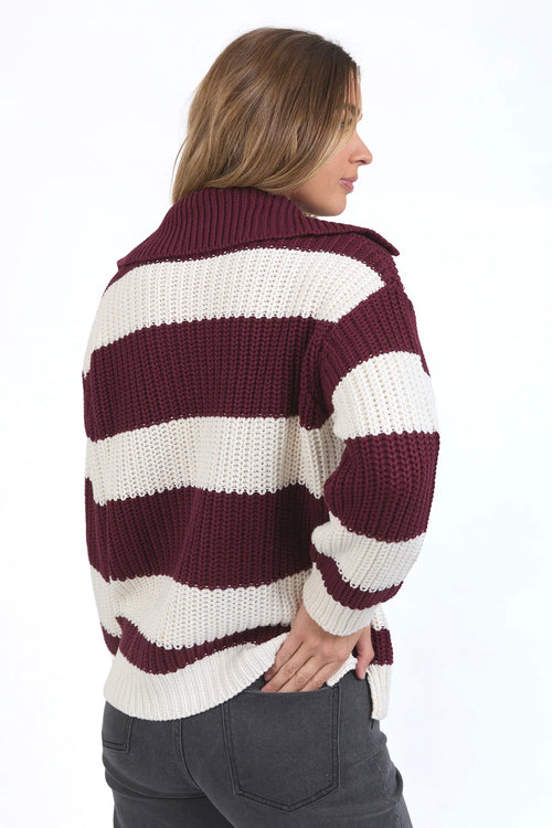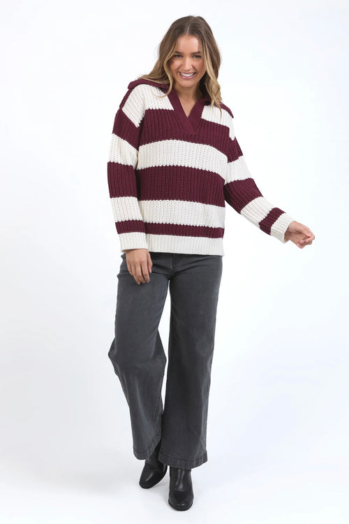 Estella Berry Stripe V Neck Knit