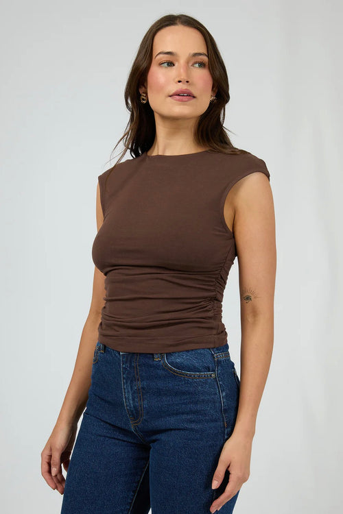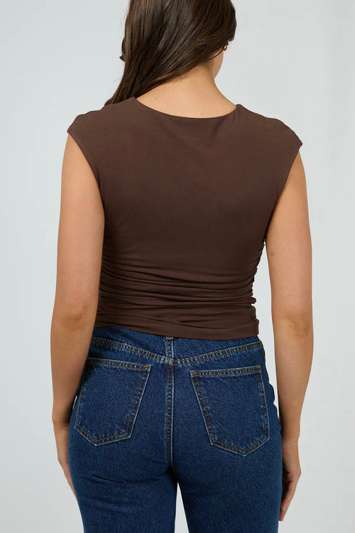 Colour: size_6-14;sale_50%;sle_short;auonline_load;season_AW25;rrp_$59.95;name_evie_top;brown;shop_essentials;sale_;pattern_plain;col_brown;clr_WINT 25;mkd_date_23.07.25;brands_other;shop_casual;dept_fashion;month_Jun 25