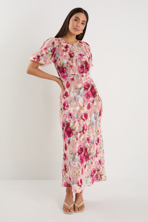 Bold yet beautifully feminine, the Exquisite dress from Georgia Zoe is designed to make a statement while feeling effortlessly wearable. Cut on the bias for a flattering drape, it skims the body with ease, while puff sleeves add volume and drama in all the right places. The rose floral print is softened by the delicate lining, making it as comfortable as it is striking.