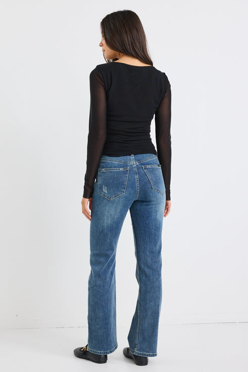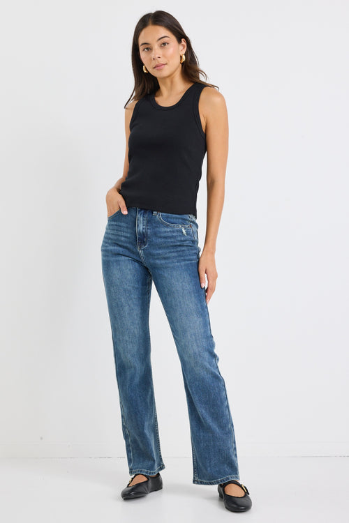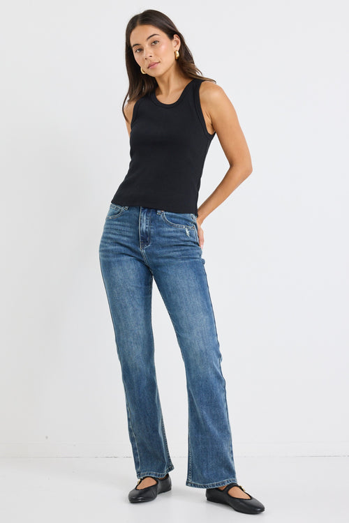 The Farah Mid Blue High Rise Soft Flare Jean by Stories Be Told offers a flattering fit with all-day comfort. Featuring a high-rise waist and a soft flare leg, this style creates a lengthened silhouette that suits both casual and dressier outfits. The cotton-rich denim blend provides a gentle stretch, while the mid blue wash gives a classic, versatile finish that works across seasons. Pair with a crisp shirt for a polished look or a relaxed tee for effortless style.