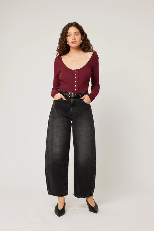 -Gigi Barrel is a super high rise jean that holds through the seat