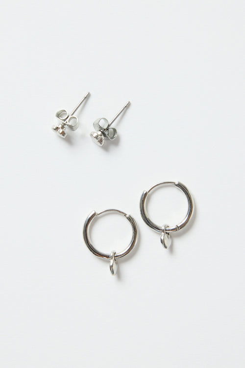 The beautiful Heart Sleeper Stud Set Earrings from Humble + Heart. These earrings are made from rhodium, giving you that shiny, silver-white sleek look!