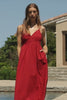 Red dress with thin straps on a white background