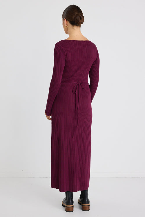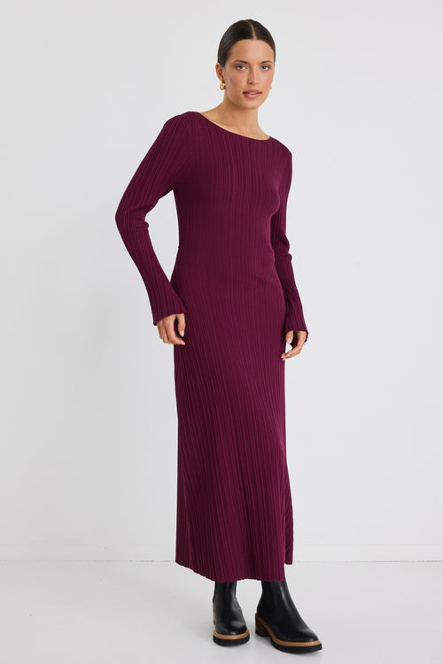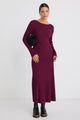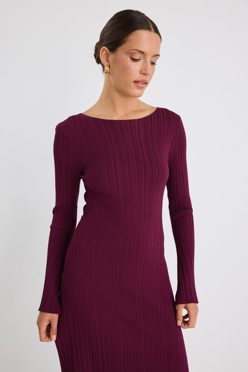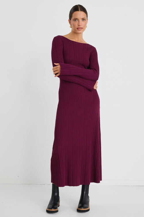 Ignite Burgundy Plum Boatneck Rib Knit Maxi Dress