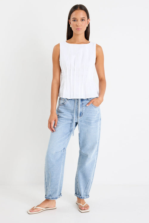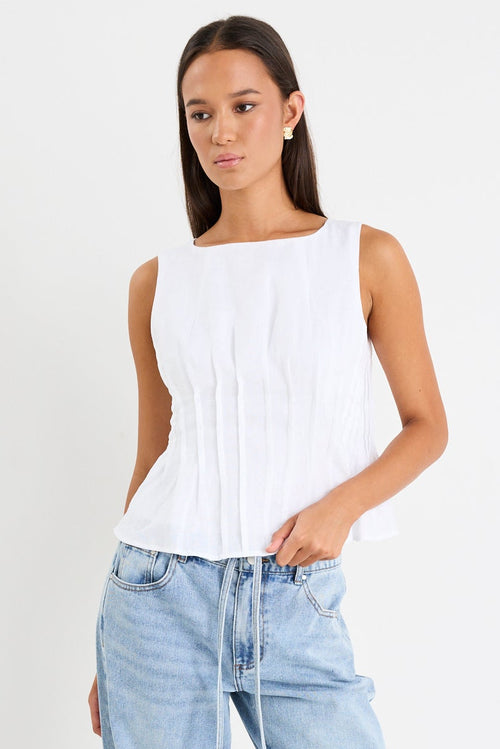 The Inspiration ivory linen top from Stories Be Told is your wardrobe’s minimalist hero. With its sleeveless cut, clean lines, and subtle structure, this piece is lined for comfort and finished with a button back closure for easy wear. Perfect for pairing with denim or tailoring, it’s a versatile plain staple that makes high-low dressing effortless.