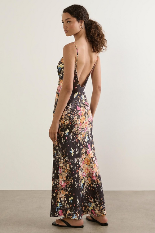 Kalinda Black Floral Strappy Low Back Maxi Dress