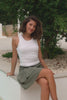 Lennox Khaki Shirred Linen Blend Tiered Mini Skirt