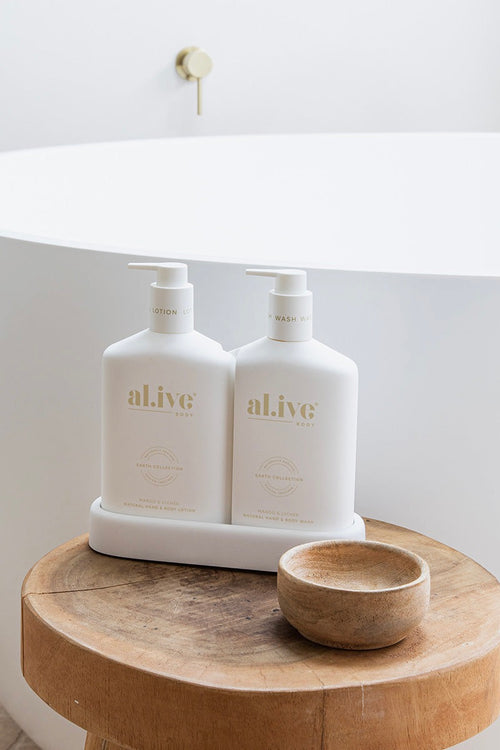 The al.ive body® Mango & Lychee Hand & Body Wash/Lotion Duo contains a luxurious blend of naturally derived ingredients, fortified with essential oils and native botanical extracts.