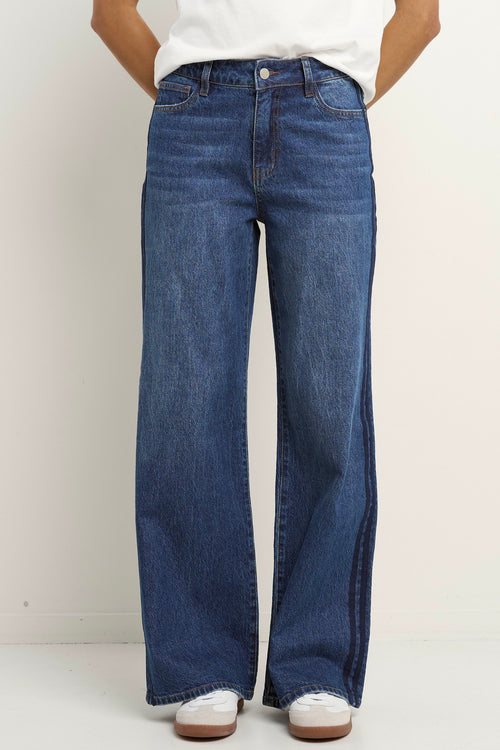 Manhattan Mid Blue Mid Rise Side Stripe Wide Leg Jean