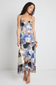 Make a statement with the Otherworldly Champagne Navy Watercolour Dress. This dreamy slip dress features an abstract watercolour print in soothing shades of blue, brown, and cream, giving it an ethereal feel. The bias-cut silhouette softly skims the body, while the delicate strappy sleeves add a touch of elegance. Perfect for day-to-night transitions, this dress can be styled with heels or edgy boots for a bold contrast.
