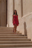 Turn heads with the playful charm of the Passion cherry ditsy polka dot mini dress from Georgia Zoe. Crafted in a vibrant cherry-red hue scattered with delicate white dots, this flirty piece is all about fun, confidence, and carefree style. The cascading frill detailing adds movement and texture, while the bias-cut shape flatters your natural curves with ease.