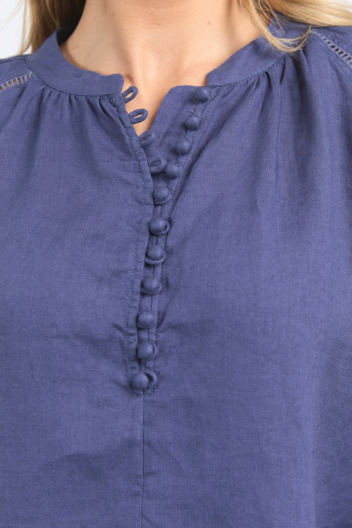 Sardinia Deep Blue Front Button LS Blouse
