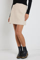model wears a natural boucle mini skirt