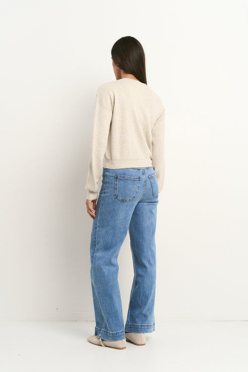 The Solar cardigan in oat is a soft, feel-good essential with timeless charm and an easy silhouette you'll reach for on repeat. Crafted from 100% cotton, it’s delicate on the skin with a naturally breathable touch. The crew neck and bold button front add structure to its otherwise relaxed vibe perfect for layering or styling solo.