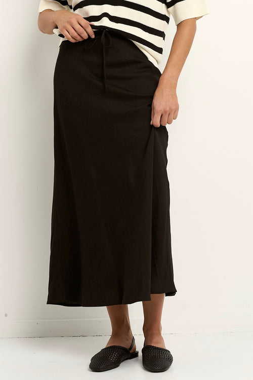 Summit Black Linen Blend Tie Waist Bias Maxi Skirt