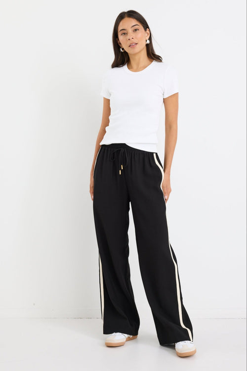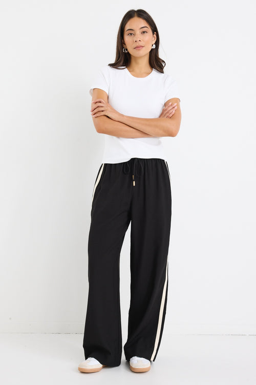 Townie Black Matte Stripe Side Tape Wide Leg Pants