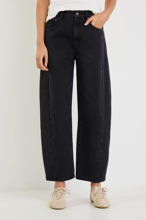 The much anticipated Varsity Black Wash Jean from Among The Brave is your go-to for cool, confident dressing with a polished twist. Cut in a flattering mid rise with a barrel leg, gentle tapering to the ankle and slightly cropped length, these jeans are the epitome of relaxed chic. Crafted in washed black denim that gets better with age, they’re made to pair effortlessly with everything from tanks and tees to blazers and boots.