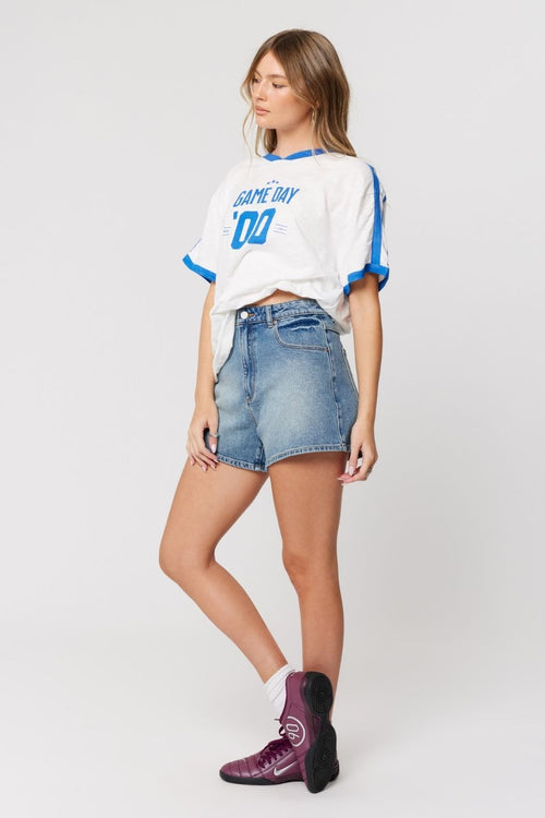 The 10cm inseam offers just the right amount of coverage without feeling restrictive, while the aged vintage wash gives them that lived-in feel straight away. Style with a baby tee and slides for everyday ease, or add a longline singlet, belt and boots when you want to take it up a notch.