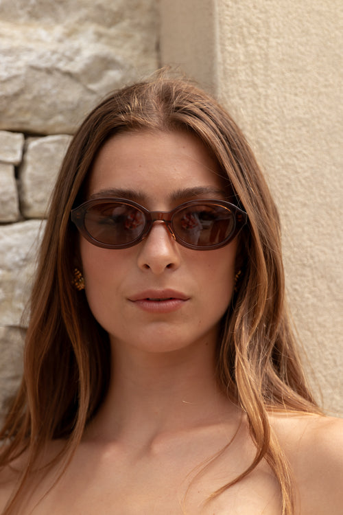 Meet your new everyday shade. The Vienna Espresso Oval Sunglasses bring a sleek, retro-leaning silhouette to your summer rotation with warm espresso tones that flatter every outfit. Lightweight with a smooth glossy finish, they strike that perfect balance between playful and polished. The oval frame adds a chic, understated edge and pairs effortlessly with everything from weekend denim to long-lunch looks.