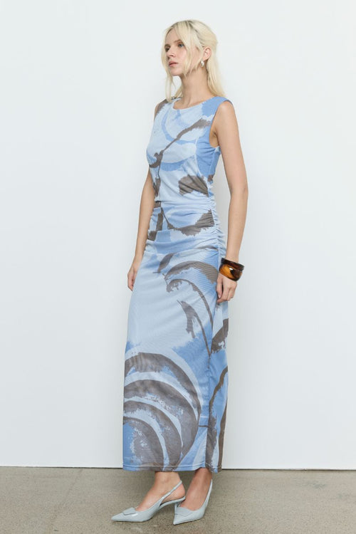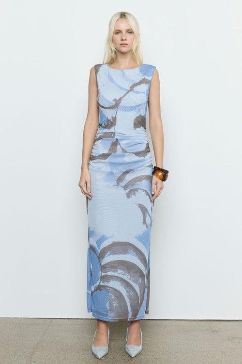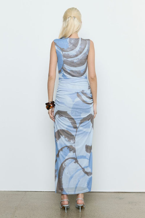 Whirl Slate Mesh Print Sleeveless Maxi Dress