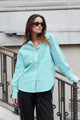 The You Got This Green Stripe Poplin Oversized Shirt is crafted from cotton poplin in a loose oversized fit. It includes a button-down front, collared neckline, chest pocket, and cuffed sleeves. Pair with tailored pants for work or wear casually with shorts.