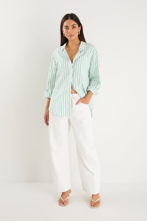 Green Wide Stripe Oversized Boyfriend Shirt
