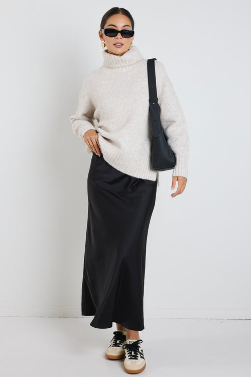 The Zealous knit features a roll neckline and ultra-soft chunky knit fabric that you'll love to wear again and again. With a slightly oversized fit this knit will keep you warm whislt looking stylish all season long.