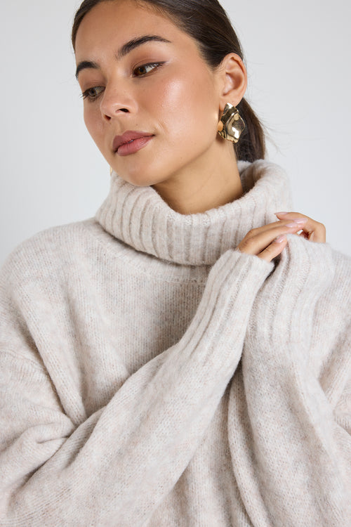 Zealous Oat Marle Roll Neck Super Soft Knit Jumper
