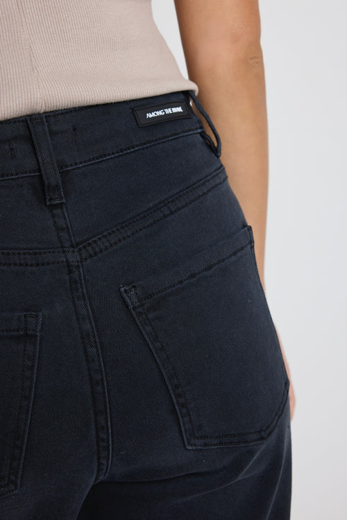 Zoey Black Denim High Rise Wide Leg Pocket Jean