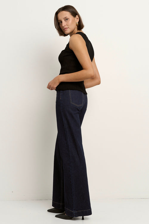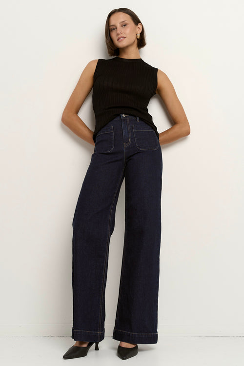 Zoey Indigo High Rise Wide Leg Pocket Jean
