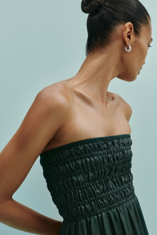 The Zuri Tencel Maxi Dress is made from a Tencel blend fabrication which is lightweight and has a smooth, drapey hand feel. The shape is in our best selling silhouette which is feminine and relaxed with a strapless, shirred elasticated bodice and soft billowing skirt that finishes above the ankle. Features include side seam pocket and side splits at the hem.